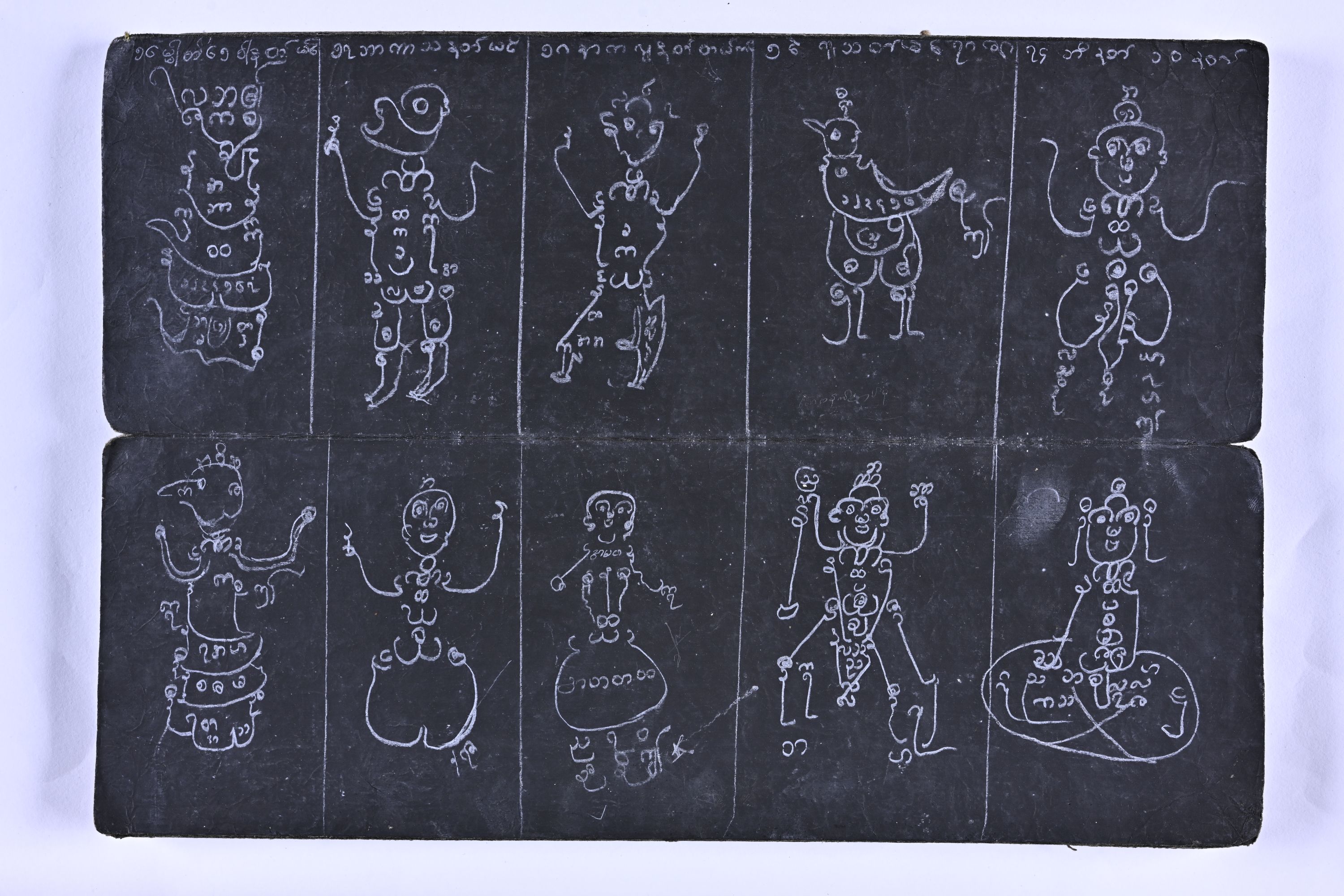 人型他折り畳み写本 / タイトル欄の書名は所蔵元で付与されたもの / 「漆塗り」とあるが実際には漆塗ではない書写年不明 / 「緬甸古代造形(獣型)漆塗り経典」と同梱個人蔵資料 / データ作成者:井上 さゆ